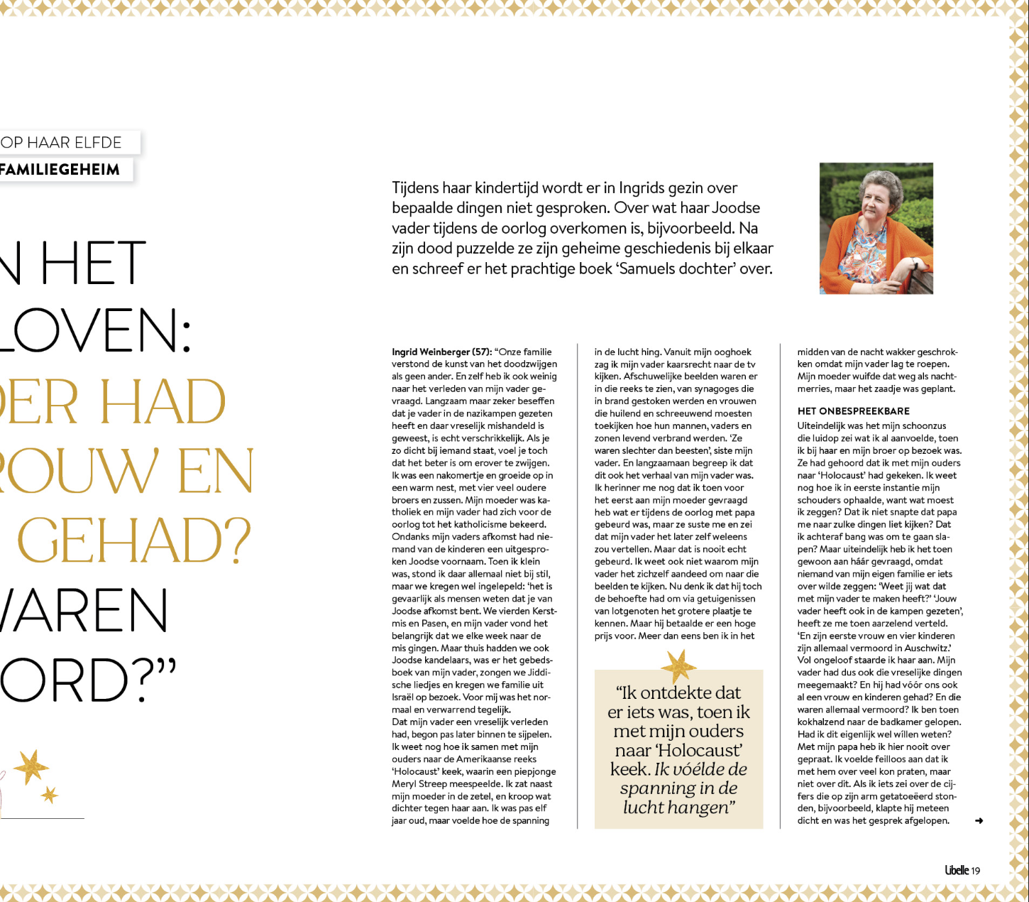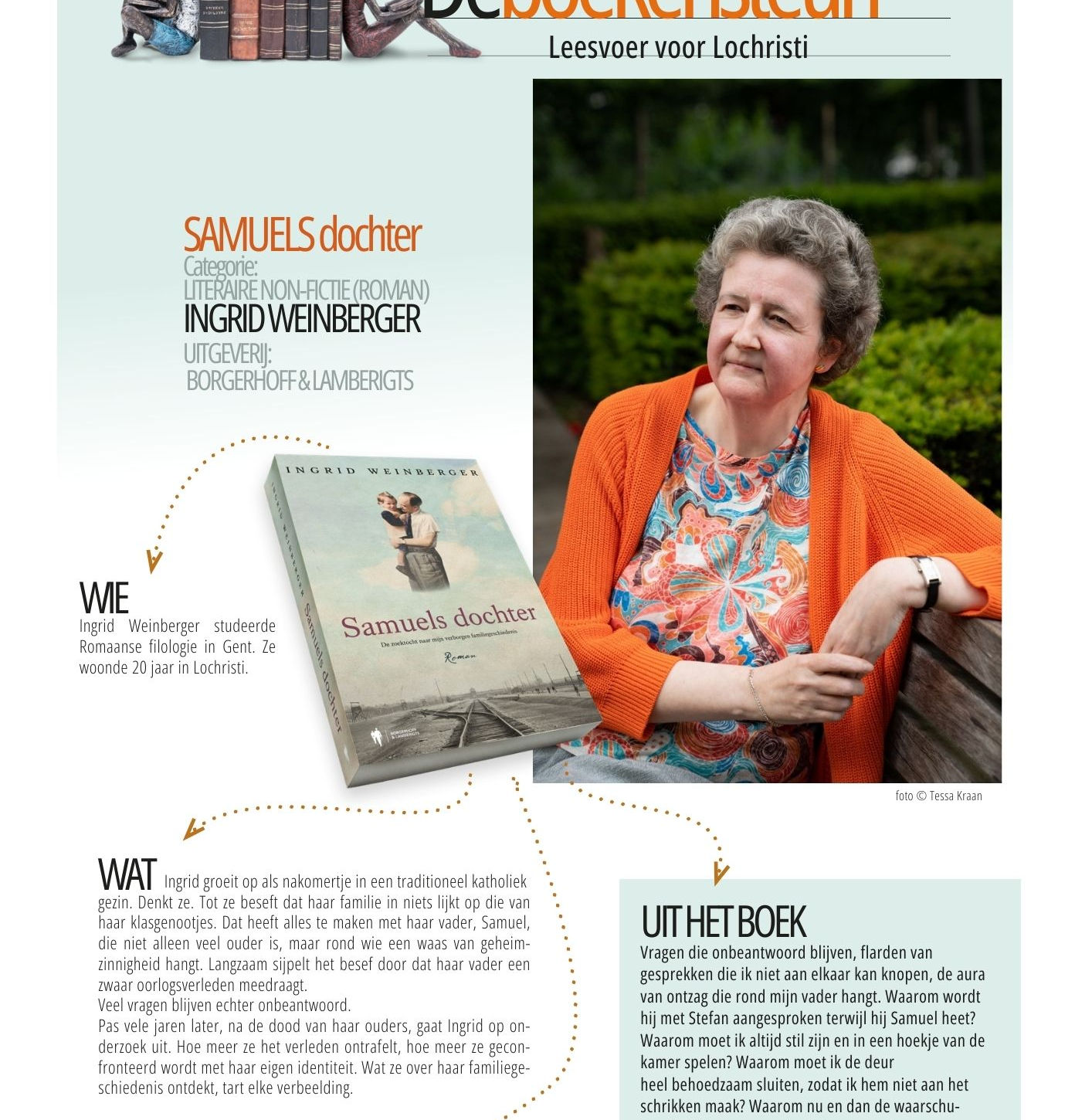Ingrid Weinberger (°1966) heeft een Master in de Romaanse filologie. Na een loopbaan in de privésector werkte ze als leerkracht Nederlands als tweede taal in Brussel. In haar debuutroman ‘Samuels dochter’ verweeft ze de zoektocht naar haar familiegeschiedenis met de uitdagingen van onze multiculturele samenleving en maakt dit boek tot een uniek en eigentijds verhaal dat de traditionele Holocaustliteratuur overstijgt.